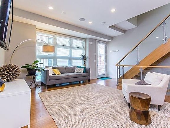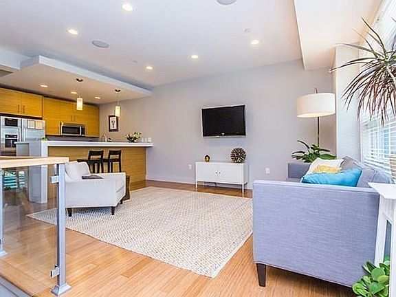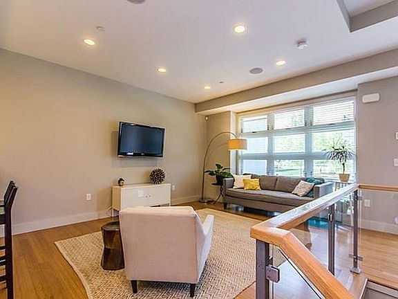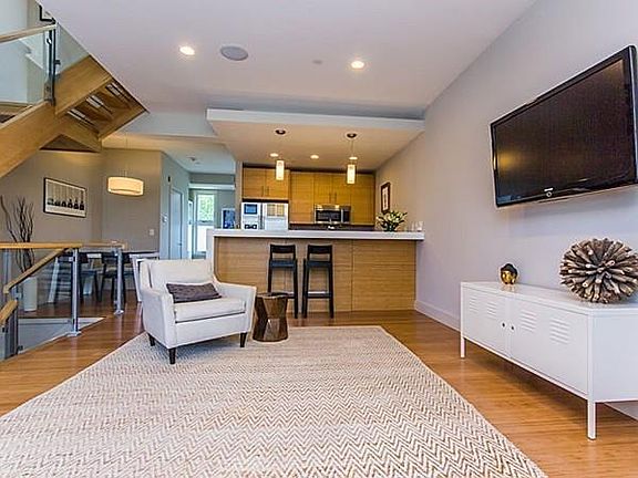 The complex known as the "Residences at Maxwell's Green" is one of the most sought-after luxury living locations in Somerville. Enter this home to a spacious open-concept living room and impressive cook's kitchen, modern floating glass staircase, bamboo cabinetry & floors, separate dining room and a half-bath. The "flex space" in the lower level is set up as a media/family-room and a guest bedroom with en-suite bathroom and custom, frosted-glass, 3 panel room divider. This room has access to the private patio and shared garden area. The upper level includes a large master bedroom suite with en-suite bathroom, private balcony and 15' ceilings, a 2nd bedroom, a full bath, and stacked laundry. The Residence at Maxwell's Green is a recent LEED development offering luxury amenities and is conveniently located near the future Green Line and next to the Community Bike Path which leads to Davis Square. Maxwell's Green also has a fitness center, media and clubhouse for an additional fee.