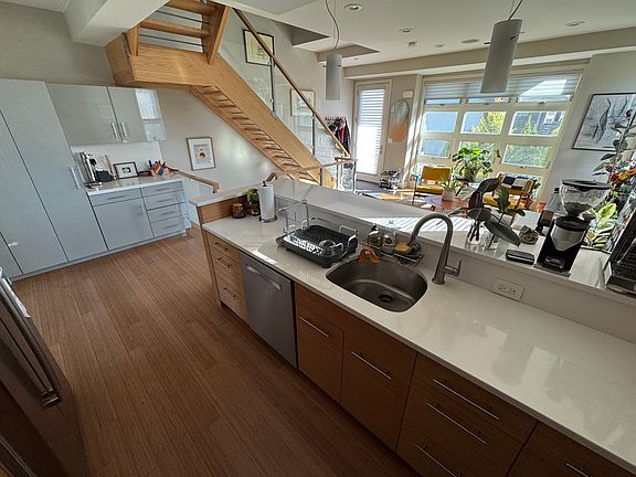 Fully-furnished modern three-floor townhouse condo located near Davis Square, Porter Square, and Magoun Square with easy access to Tufts, Harvard, MIT and the MBTA green line and red line and on the Minuteman Bikeway/community path. The unit has three bedrooms (one of which is being used as an office) and 3 1/2 bathrooms with no one above you, and generous outdoor space, including an outdoor sauna and shower. Enter the unit via private entrance with a front garden and porch to find an open concept kitchen/living area surrounded by windows & a glass paneled staircase on the main level. The kitchen features Bosch appliances, custom cabinetry w/ coffee station & breakfast bar perfect for entertaining. Around the corner, a dining room & 1/2 bath are found. Upstairs, an expansive master w/ vaulted ceilings, balcony, walk-in closet, & an ensuite bath w/ dual vanity, glass shower & Jacuzzi tub. A 2nd bedroom, full bath, & W/D also found on this floor. On the lower level, you have an additional living area & bedroom w/ full bath, divided by a sliding partition for flexibility. This opens up to a private patio w/ a private sauna, outdoor shower, grill, table & lush trees creating your own little sanctuary. 1 parking included. Short-term guest parking available in lot. Protected bike lanes to Tufts (10min), Harvard (10min), and MIT (15-20min). Security deposit and first month's rent due at signing. No pets, no smoking.