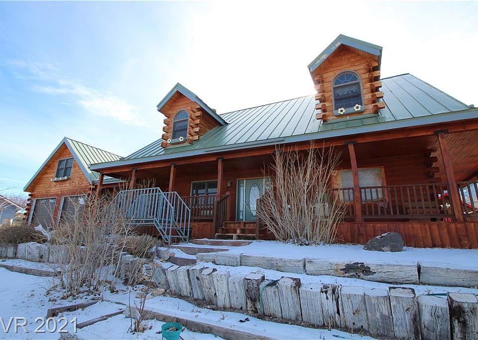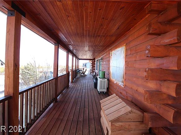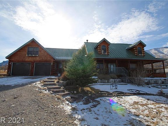 This fine crafted log home is nestled in Cold Creek in Humboldt-Toiyabe Nat'l Forest~45 minutes from Las Vegas! Sited on a trophy lot & borders USFS land. Enjoy premium backyard views of wilderness/forest/mountain & abundant wildlife (deer/elk/wild horses roam the area). The charming old-fashioned front porch overlooks long-range vista views. Inviting living room with vaulted ceilings, honey-color pine woodwork, cozy soapstone fireplace & dining area. Country kitchen w/tile countertops & dining area. Spacious master suite with his+hers mirrored wardrobes+two closets. Guest bedrooms on main floor. Beautiful clawfoot soaking tub in one of the two guest bathrooms. Bonus den w/access to an exterior deck w/Trek deck+unobstructed mtn views. Anderson windows, radiant flooring, hardwood floors, metal roof. Fenced yard w/raised garden beds, apple & apricot trees, potting shed/chicken coop. Energy shed w/upgraded energy system includes wind turbines, solar, generator, batteries and inverters.
