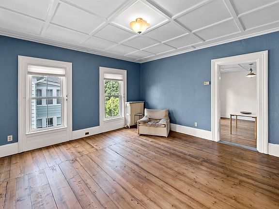 Great opportunity to be in the College Street neighborhood with access to public transportation and the College Green. Enjoy the historic charm of this second floor large three bedroom condo with some flex spaces with great natural light and spacious rooms. At one end of the flat are two bedrooms and a seasonal sunporch and the full bathroom. In the middle of the condo is the kitchen which has a washer and dryer and opens up to the large dining room. The front of the unit has the primary bedroom with an en suite half bath and a two-room living area with a small private office. This association has shared garden space and the basement has designated storage areas for each unit. Enjoy in-town living at its best.