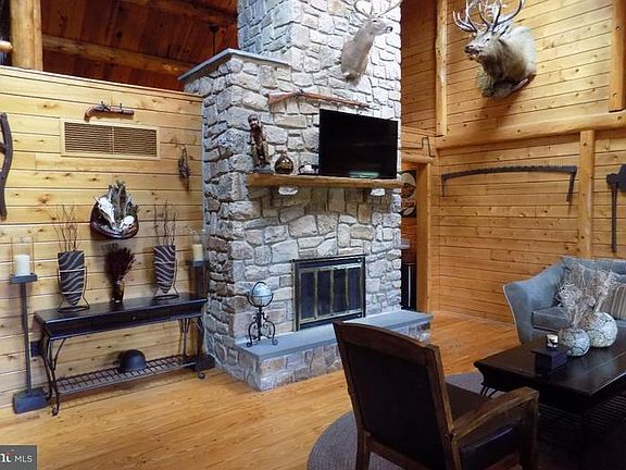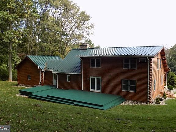 Beautifully maintained Northern Cedar log home nestled back on a secluded 19+ acres in District Township. This home has been completely restored and sits back well off the road on top of the hills of Berks County to provide some of the nicest views that the area has to offer. There are groomed trails throughout the property to allow you to take advantage of all that could be yours as wildlife abounds in the area. The home features 3 generously sized bedrooms as well as 2 full bathrooms and 2 powder rooms. The living room boasts a floor to ceiling, two-sided fireplace that can also be enjoyed from the kitchen which is complete with Corian countertops, Oak cabinets, new appliances and plenty of pantry space. Adjacent to the kitchen is a mudroom with its own entrance as well as access to the 2 car attached garage complete with new garage doors and openers which allows for easy unloading of groceries and supplies. The main level also features two large bedrooms as well as one full bathroom a powder room and first floor laundry. Go up the open staircase located in the living room and you will find yourself in the loft that overlooks the living room and the kitchen. Through a doorway in the loft, you will find yourself in the Master Bedroom complete with Master Bathroom and ample closet space. The basement is finished and boasts a large recreation room complete with wet bar. This home has had many upgrades under the current owners, including new metal roof, skylights, gutters (with guards) and downspouts. The chimney has also been repointed with a new cap added. There have also been new floors done in the kitchen and bathroom as well as upgraded fixtures added throughout much of the home. Aside from the primary heating system, there is also a furnace in the basement that burns wood or coal and can be used to heat the entire home. Complete with an upgraded alarm system with driveway alarm so you know in advance when someone is coming. The property also has a 40x50 pole bar