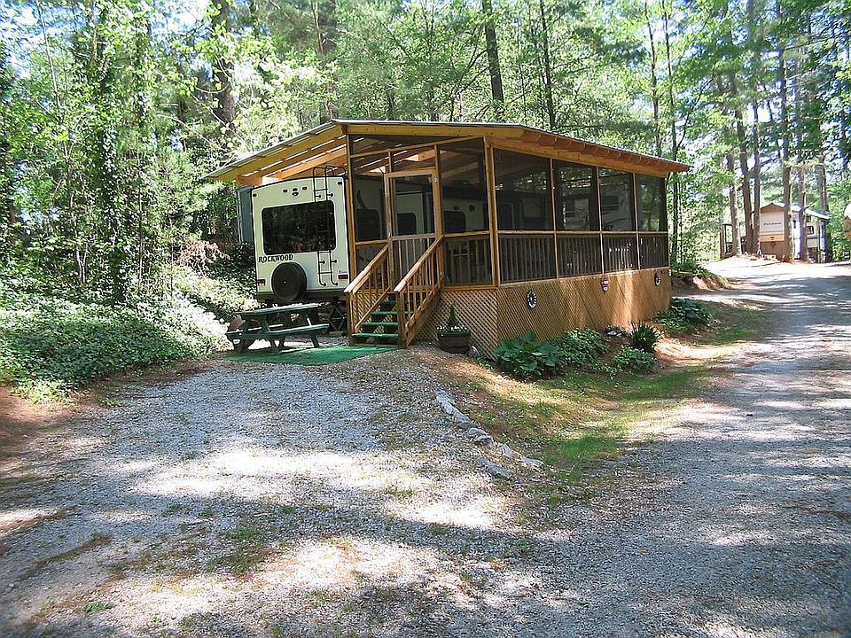 55+ RETIREMENT SEASONAL COMMUNITY/Pets are also welcomed! 2017 Forest River Rockwood Ultra Lite, Model #2906WS, 33 ft. 11 in. Slide outs provide a "roomy" living area. Large, screened deck provides spacious outdoor comfort for family and friends. This STATIONARY RV is being sold by original owner and is located in Country Woods RV Park on a lot with front and back parking spaces. It is also protected by a roof over. This beautiful lot is located with mature trees for plenty of shade. The park offers laundry facilities as well as bath and shower facilities. This RV is in pristine condition ready for you to enjoy your time in the mountains April through October. Annual lot rent is $2,000. Residents can only stay in the park April-October and must be out by November 1st. The RV stays year-round. All offers will be considered.