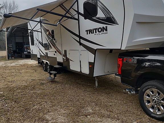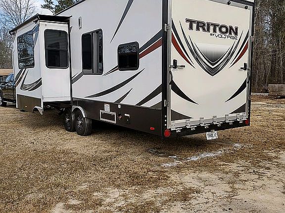 39' Triton Voltage Toy Hauler Fuel station, generator, 5th wheel. Very nice RV set up in an adult 55+ community. Seasonal rent is not included in the price. Private showings Only! Please call 828-524-4339 for a showing. Thank You!