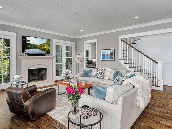 One of Smith Lake's most recognizable waterfront properties, over 300ft of shoreline, big water views! Stunning Craftsman home w/4BR/5.5BA + bunk room. Luxury main floor master suite, Quartz counters throughout, gourmet kitchen, hardwoods & tile, designer paint scheme. Fire places in & out, huge wraparound deck, entertainment spaces, hot tub, 3-slip dock, highend landscape. Furnished & decorated.