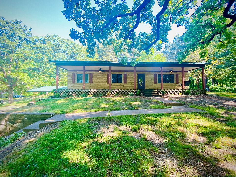 Charming Home in the Country! Room to roam and lots of front porch sittin! But, just minutes from town... This 3 bedroom 2 bath home with partial basement and open floor plan is a MUST See! This Rock home has updated kitchen with beautiful wood cabinetry and hardwood floors through much of the space. Updated vinyl windows and metal roof are a plus! The partial basement is heated and cooled and can easily be finished out. Almost 3 rolling acres, and gorgeous mature trees create an idyllic setting! Call or TEXT for a tour!