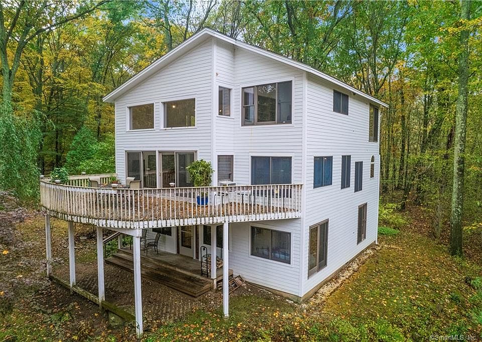 Nestled on 4 acres of land overlooking Deer Lake, this stunning contemporary home provides both privacy and serenity. Enjoy the extended outdoor living space on the large deck overlooking the lake and waterfall. Hardwood floors, large windows, and a stone fireplace make time in the living room a dream. Prepare meals in the kitchen like a seasoned chef. The home also features 2 offices that boast incredible water views. Retreat to the primary bedroom suite, complete with a sitting room, attached bathroom, and walk-in closet. On the lower level you will find two additional bedrooms as well as a recreation room. Custom finishes and attention to detail are apparent throughout this remarkable home. This property is bordered by over 200 acres of preserve, made up of hiking trails, streams, woodlands, fields, open rock faces, a river, and two private lakes. The home is close to Hammonasset and Chatfield Hollow state parks, a train station, shopping, restaurants, post office, and library. Tours begin Friday October 21; Schedule yours today! GPS does not take you to the correct street- type 57 Cow Pen Hill Rd into GPS and look for mailbox #60.