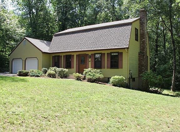 A peaceful and private two acre, wooded lot on a culdesac surrounds this solid, well maintained Gambrel Colonial! Features include refinished hardwood floors, six panel doors, brick entrance walk and a lovely cedar deck! A traditional floor plan with well proportioned rooms includes a front to back living room with bay window and granite faced fireplace, formal dining room, eat-in kitchen with hardwood cabinetry and pantry, mudroom entrance from the garage with a large coat closet and a spacious Master with deep His and Hers closets, remodeled hall bath with double sinks and a soaking tub, plus two additional bedrooms featuring hardwood oak floors! The walkout lower level offers 400SF of additional living space with ceramic tile flooring plus two utility rooms, cedar closet and workbench. Garage enthusiasts will appreciate this oversized two car space offering newer thermal doors and openers and pull down stairs to loft storage! Walk to the airline trail or travel only minutes to Route 2 commuting and shopping from this quiet location!