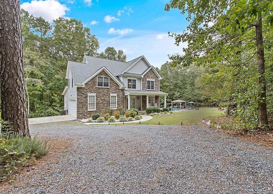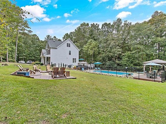 Gorgeous custom home on nearly 6 acres with a heated in-ground pool, high-speed fiber internet & over $300K in upgrades & additions. True pride of ownership and a meticulous attention to detail can be seen everywhere inside and out. The wooded lot provides ample privacy with almost 2 cleared acres of fully fenced land with electric front entry gate and a fenced dog-run. Home features 4 bedrooms plus an additional office/study w/closet and a huge 3rd floor rec room. The fully remodeled high-end kitchen opens to a comfortable living room w/ stone fireplace & is overlooked from above. Oversized owner's bedroom w/ sitting area & fully remodeled en suite bathroom. Spacious secondary bedrooms w/ a large downstairs guest bedroom. The owners' pride and joy is the 3rd floor rec room with a full bar and ice maker, window bench seating & space for a large pool table w/ plenty of additional, separate storage space. 50yr roof installed in 2021 w/ transferable warranty. Pelican industrial water filtration system w/ UV filtration. Generac home generator. Pittsboro school assignment. Close to White Pines Nature Preserve & trails