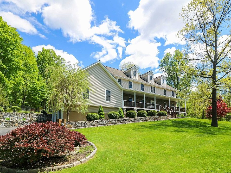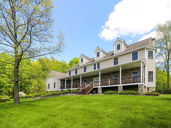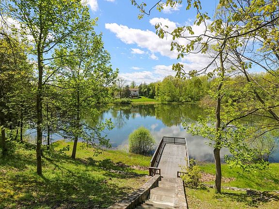 Waterfront Custom Front Porch vinyl & stone Colonial overlooking your own private spring fed pond (approx 4 acres) with dock that most only dream of owning. Like new, this prestigious home a total of 9.47 acres with Cherry Hardwood Flooring throughout has over $250,000 invested in the landscape with exquisite stone walls and fenced yard. This hilltop showplace has a winding private drive yet on a cul-de-sac for both convenience and total privacy. Entertaining in this magnificent kitchen and breakfast nook open to large family room with stone fireplace. The Great Room is over 1000 sq ft. This home offers a master BR suite w/WIC and private bath, walk-up attic, three car garage, large oversized Trek decking overlooking park-like grounds. With a total of 4 bedrooms and 4 full bathrooms, you will never be space limited. This majestic estate is a sellers sacrifice and will not last and awaits your personal touch.