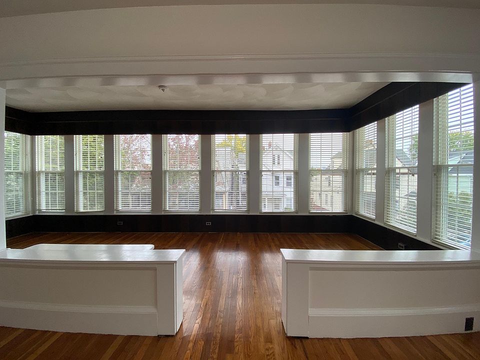 Heat & Hot Water included in the price. Absolute wall of glass at the front of the house opens into the living room with a very nice fireplace. The amazing windows floods the spaces with light continuing into the dining room that is complete with a built in hutch. The eat in kitchen has a custom built bench and what appears to be endless cabinets and counter top space. All the appliances and functions a modern cook will need are here to enjoy. 2 very equal sized larger bedrooms with good closet space in each, as well as other closets in the unit. A spacious bathroom complete with full tub show combination and a closet. Heat is included in the rent, there is no laundry but a laundromat is a 3 minute walk away and there are also absolutely no pets or animals allowed. 1 Year Lease