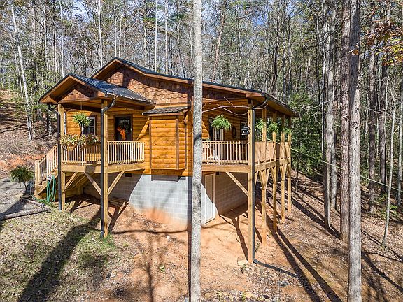 Escape to the tranquility of the mountains with this beautifully crafted 1-bedroom, 1-bathroom log cabin, nestled in a private wooded setting just minutes from downtown Murphy, NC. This turnkey retreat blends rustic charm with modern convenience, making it an ideal vacation getaway, rental investment, or cozy full-time residence.  Step inside to an inviting open floor plan featuring vaulted ceilings, warm wood accents, and a stone fireplace—the perfect spot to unwind after a day of adventure. The well-appointed kitchen boasts stainless steel appliances, granite countertops, and custom cabinetry, seamlessly connecting to the living space for easy entertaining.  Outside, enjoy the peaceful surroundings from your covered front porch, where you can sip your morning coffee and soak in the natural beauty. Whether you're looking for a quiet retreat or a basecamp for outdoor adventures, this cabin is the perfect escape.  With its prime location near downtown Murphy, Lake Hiwassee, hiking trails, and the Cherokee National Forest, nature lovers and adventure seekers alike will find plenty to explore.