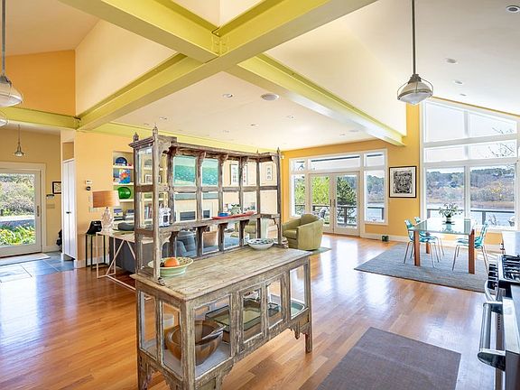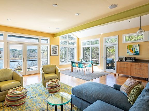 Waterfront idyll-Sparking water views! Serene retreat on banks of Mill Pond. Tranquility, privacy; watch the tide retreat and return while bathing in the light that streams through the oversized windows of this unique contemporary, architect designed/Art Hultin build. Professionally designed garden with unique stone walls, modern parterre, climbing roses, secret garden, and paths to water's edge. Immaculate interior, open floor plan w exposed steel beams, gas fireplace & half bath. Up to office area and main bedroom w ensuite bathroom., private deck + roof deck. Lower level boasts an oversized bedroom/family room, full bath plus laundry and utility room. Separate 2 B/R 1 bath cottage studio with coffee bar-Bosch W/D Generous storage. Walk to enchanting Pamet Harbor for enviable sunsets, join Harbor Club to socialize, kayak and play tennis. Fisher beach nearby. Ptown is an easy drive; cycle to Jams, Blackfish Rest. Farmers Market or to Wellfleet along the scenic back road.