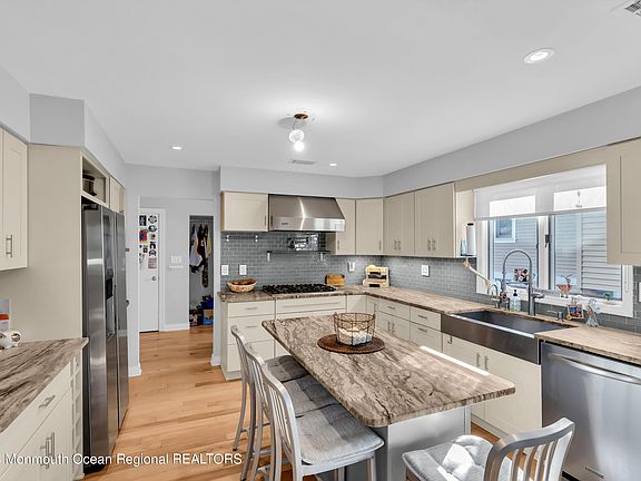 Nestled in the sought-after Sandy Point section of Brick, this 4-bedroom, 3-bathroom custom Shore Colonial is a true gem. As you arrive, the Paver Driveway and Walkways greet you with elegance and charm. Inside, you'll find impeccable craftsmanship with Custom Solid Wood Cabinetry, Leathered Finished Granite countertops, a Viking Cooktop and Hood, a convenient Pot Filler, Wall Oven, a spacious Center Island, and a beautifully appointed Tile Backsplash. This home offers a blend of sophistication and functionality, making it the perfect haven for comfortable and luxurious living. Don't miss the opportunity to call this exceptional property yours!