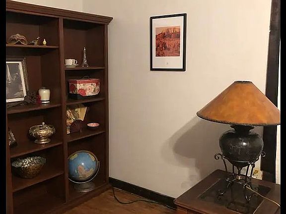 In Huntington, Utah, Our "Surprisingly spacious" house is set on .89 acres a half a block from Main Street, kitchen, dining room, living room, master bedroom, bathroom, spacious 2nd bedroom with walk-in closet, laundry room, mudroom, cement patio. Very large yard with shed, heating is forced air, Air conditioning is evaporative cooler