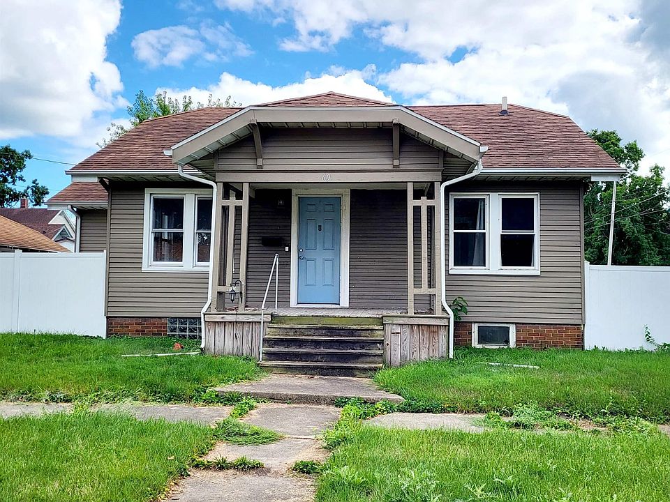 This home is ready for a new owner. Walk in to a nice sized living room that opens up to the dining room. There are 2 Bedrooms with a Full bathroom in between. The bathroom has built in drawers. Seller believes there is hardwood under the living room and Bedrooms carpets. Ring doorbell stays. Google Nest Thermostat in the Living room. Seller didn't get the Kitchen cabinets painted but she will leave the paint for it. Stove, Refrigerator, Washer & Dryer will stay (not warranted). Full basement for plenty of storage and a workbench that stays, toilet does not have water turned on and has never been used in basement. The extra Washer/Dryer is to go to someone or else will be removed before closing. Privacy Fenced in Backyard with a nice Vinyl Fence. Between the side of the home and the garage is a patio area.
