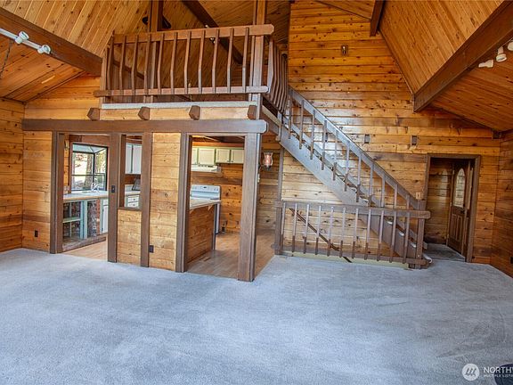 Rv parkingCedar lodge style homeSports courtCircular driveThree oversized bedroomsExpansive wrap around deck