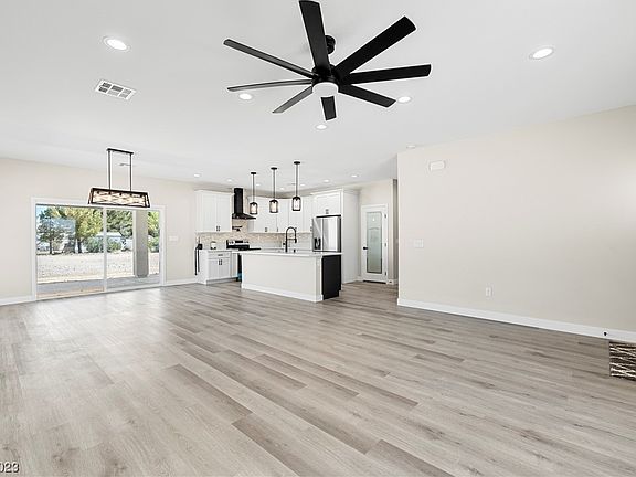 Gorgeous, brand new, custom built home! 3 bedroom, 2 bathroom, 1670 sq ft on a half acre lot. Open concept floor plan. No expense spared, custom upgrades throughout! 9' ceilings and recessed lighting. Decorative light fixtures & faucets. High quality kitchen cabinets with soft close. Great island with large farmhouse sink overlooking the living and dining room. Quartz countertops, beautiful backsplash, pot filler and top of the line LG appliances, included! Oversize sliding glass doors and windows. The dining room leads to the covered patio & stamped concrete. Primary bedroom has a great walk-in closet with a sliding glass door to the back patio. Double sinks and gorgeous tile shower in the primary bathroom. 2nd bathroom also has a gorgeous tile shower w/tub combo. Upgraded doors, knobs & baseboards throughout. Ceiling fans in every room. Spacious laundry room with a sink and cabinet. Laundry room leads to the garage. Oversize, 3 car garage has an exterior door and its own sink, too!