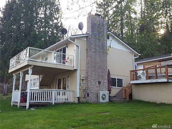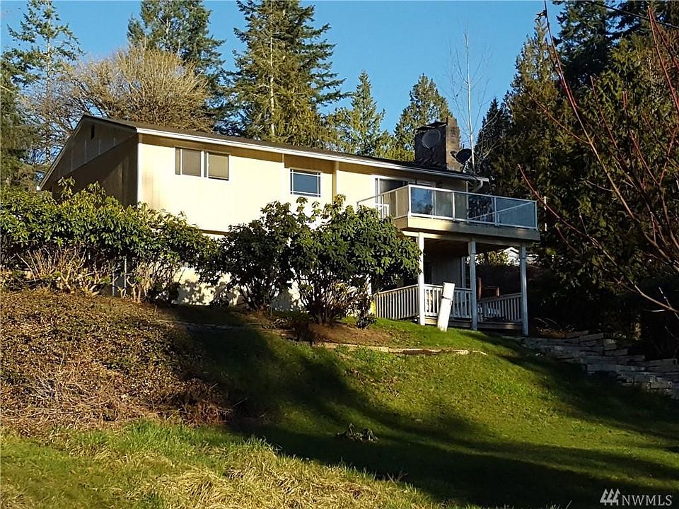 Great View & Super Beach Access w/out the waterfront taxes! Very comfy & private updated home w/ new kitchen, bath and flooring. Sealed deck with windbreak rail makes for a dry lower deck. Lrg Master on main level w/barn door & huge custom closet. Comfy Den downstairs w/ wood stove & french doors to another deck with a view! Additional terraced decks surround this home. Large utility/bonus room. Plus extra bonus room attached to 2 car heated garage w/ half bath. Community Park & Playground.