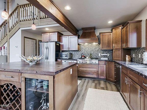 This is it! You can now own a Special Mountain Home with a Magnificent View of the Ponderosa Pine Trees right in Flagstaff! A lovely lot in Ponderosa Trails holds this passive solar 3 bedroom, 4 bath home that's been updated recently with a new roof in November of 2018, New Water Heater in Jan of 2019, New Luxury Vinyl Plank flooring, Custom Kitchen Backsplash and Professional Landscaping in the rear yard so that you can do all your favorite things...grill & serve meals at the built in grilling station, soak in the hot tub, snuggle up to the fire pit or just reflect in peace surrounded by trees. The kitchen is well appointed with an African Hardwood Island and the light and bright feel of the home will make you want to have ''Staycations'' in your Mountain Retreat. Appliances included