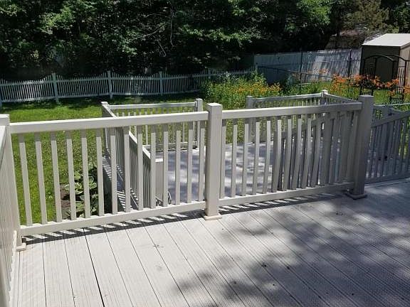 12 x 18 workshop/shed with electric. Vinyl fence corner lot with vinyl 2 tier deck, family room w fireplace. Owner assist available.