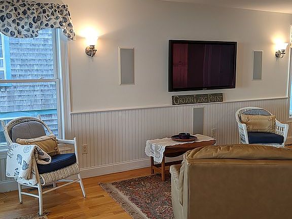 Custom built beachfront home that boasts panoramic three-state waterviews. Water can be seen from every room in the home. Watch the sunrise each morning over Fishers Island Sound and moonrise every evening. Moor your small craft in front of the home.