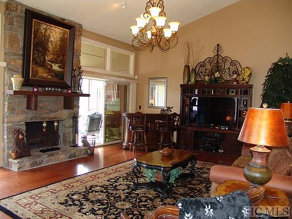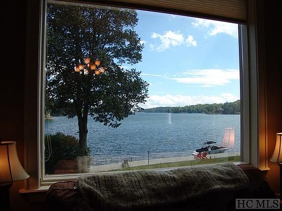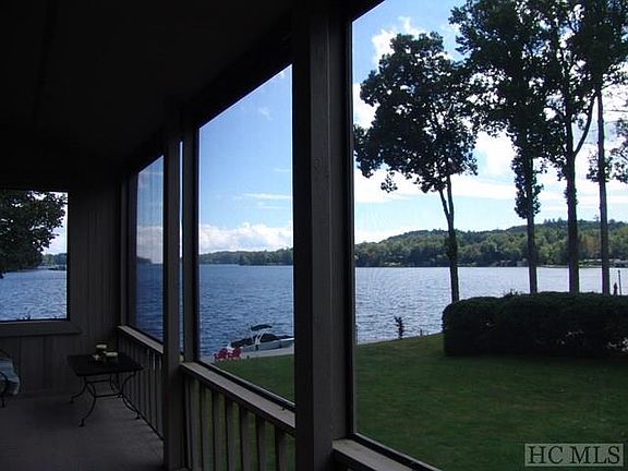 Located on the shore of beautiful Lake Toxaway, this 3 bedroom, 2.5 bath end unit has a full view of lake and mountains. The living area has a cathedral ceiling, native stone f/p, large fixed glass window that allowing for a full lake view, and double sliders opening onto a screened porch. The private master suite is located upstairs and two guest bedrooms are on the lower level with sliders onto private patios. The kitchen/dining is well equipped with updated cabinets, counters and appliances. Amenities include a heated pool, private tennis court, club house and on site caretaker. The care and details in this home are amazing! A private board-walk dock surrounds the grounds and accommodates each owner with a special spot for docking their boat. Outstanding open water and mountain views!!