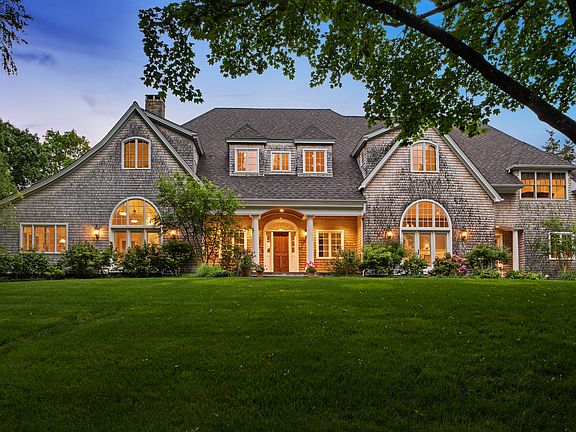 FIRST TIME OFFERED! Completely private and lush 2 acres, high above beautiful East Wharf Road. Enter through the stone pillars and into an oasis with an architecturally designed shingle style home like no other in this area. A two story center living space is the heart of the light filled house with other main floor spaces offering 10+ foot ceilings. In SUPER MINT condition, this is a home with spacious entertaining spaces in perfect harmony with cozy rooms designed for smaller space needs all in a thoughtful flow pattern. A quiet, calm elegance that blends the best of traditional New England with a relaxed coastal vibe. White trim and beautiful details throughout, complement the warm Brazilian cherry floors. New from the ground up in 2005, this 8,000+ square foot residence has been ideal for an active family with lots of interests, uniquely complete with country club amenities- pool, spa, gardens, outdoor kitchen, pool/guest house, patios, outdoor fireplace, sports and play area and just blocks to sandy East Wharf Beach and downtown cafes. The main house offers 5 bedrooms and five full baths. The white Carrara marble kitchen opens into both family and breakfast rooms, with multiple french doors leading to two decks overlooking the glorious back yard. The master suite includes a walk out balcony and large private separate dressing room. Enjoy the light-filled lower walk out level offering more options for guests, work-out, in-law or aupair.