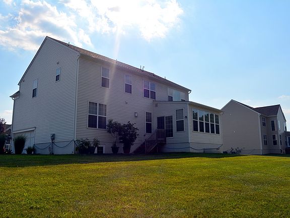 Stunningly Beautiful Pulte Homes Ambrose Design in Windsor Cove featuring 5 BR, 4 Full Bath, First Floor Bedroom/Bath & Florida Room! Full unfinished basement with roughing for an additional Bath & 11ft. ceiling Height! . Luxury features include High Ceilings, 2 Story Grand Foyer with Hardwood Floors, Landscape Package, KitchenAid Appliances, Tray Ceilings in Master Bedroom, Media Room All situated in a beautiful tree line setting on a half acre lot. Custom Window Treatments Included. Extras include recessed lighting throughout the house. Gleaming Hardwood flooring throughout the first floor. Energy efficient 2-zone heating and air-conditioning. Conveniently Located close to major roads, shopping, restaurants, Park & Ride and Princeton Junction train station