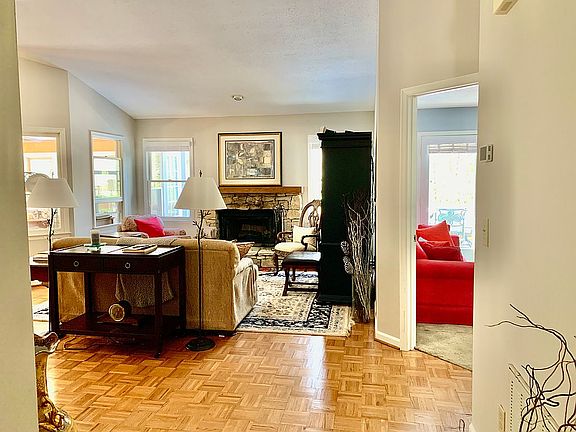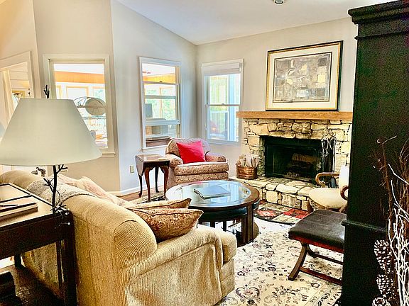 One level living, a flat driveway with updates. Light and bright home on a very private level lot with a creek, minutes to the clubhouse, golf course, and amenities in a gated community. Enjoy spending time on your private deck (rebuilt in 2023 with TREK decking & railings) watching wildlife from the propane fire pit, and enjoying the peace and quiet. The property includes updated (2020) master bathroom with vanity, a marble-tiled heated floor, rain shower; a new (2019) HVAC, a 400 sqft sunroom, kitchen, bathrooms, California closets, interior paint, and stone front porch. Surrounded by two POA lots, which can be purchased, and green space. This is the ultimate in privacy. The buyer pays IAF $12,500 at closing.