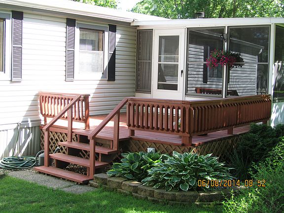 Well cared for home in beautiful Lake Delton, WI. Nestled in the woods this home has a spacious open floor plan with vaulted ceilings, large living room with fireplace, lots of cupboards in kitchen,new appliances, separate laundry, master bedroom with bath and 2nd bedroom with bath, central AC. Enjoy your yard from the deck or huge 3 season porch. Extra storage building in back. Convenient to the Dells and I-90. Clubhouse, nice pool to enjoy on hot days..Great vacation /retirement/investment home. Move in ready.