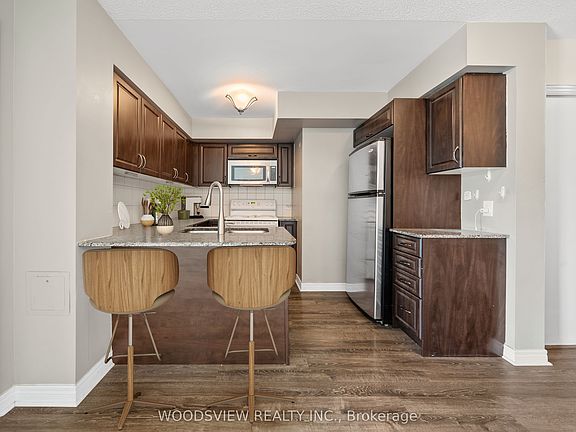 Welcome to Wilshire on the Green Boutique Living in a Prime Location! Step into this beautifully upgraded 2-bedroom suite, perfectly situated just steps from Warden Station. Featuring a bright, functional layout and a rarely offered floor plan, this unit boasts 704 sq. ft. of interior space plus a massive southern facing 162 sq. ft. balcony, ideal for outdoor entertaining. Enjoy stylish new laminate flooring throughout, a modern kitchen with stainless steel appliances, a breakfast bar, new faucets, and upgraded light fixtures. The spacious semi-ensuite bathroom offers a relaxing soaker tub, while the primary bedroom includes a custom closet organizer for optimal storage. Additional perks include a large entryway closet, ensuite laundry, premium parking and large storage locker conveniently located near the elevator.The building offers excellent amenities, including a full-sized gym and a beautifully landscaped rooftop terrace, perfect for BBQs and hosting family or friends. Freshly painted and professionally cleaned, this move-in ready gem is a short stroll to Warden Subway, Warden Woods Conservation Area, schools, and shopping. A perfect blend of comfort, convenience, and value, this is urban living at its best!