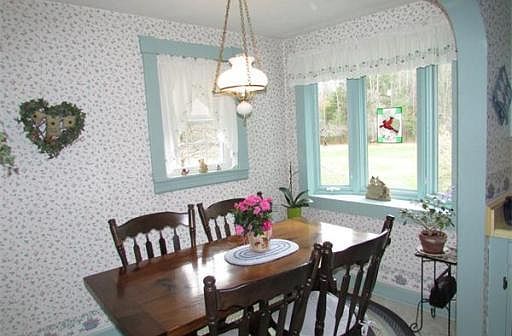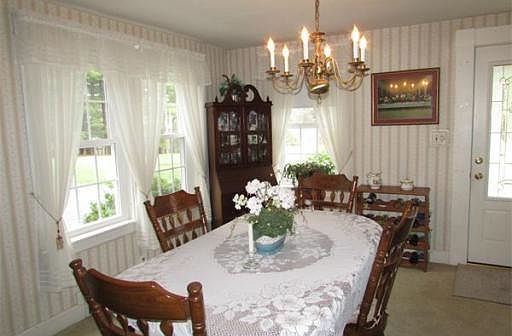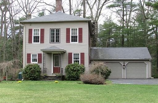 AMAZING PRIVATE SETTING! Enjoy the song birds and flowering shrubs in the 2 acre open yard surrounding this striking 4 BR 1 1/2 BA home and with view of a large pond. First floor features a sunken formal family room with full length stone wall surrounding fireplace crafted of local flat stone, large formal dining room and eat in kitchen with charming breakfast nook centered on bird viewing window plus first floor half bath and laundry. Second floor features 4 Bedrooms and a full bath including full length front bedroom and full length rear master bedroom with walk-up attic! Replacement windows, vinyl siding, newer heating system, back up basement wood furnace and oversized two car garage complete this very disirable picture. Sit on your side screened porch just minutes from downtown Sturbridge and feel a world away! Must see!