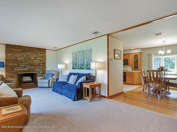 Warm and welcoming 3 bedroom Ranch surrounded by farmland to one side and a quiet neighborhood on the other. This acre property offers an extensive collection of mature ornamental & shade trees as well as a large variety of perennial plantings for 3 season interest. Inside is immaculate and surprisingly spacious. Hardwood flooring, eat in Kitchen, Living Room with a wood burning fireplace and a cozy breezeway provides the perfect spot to enjoy a good book. Large basement space for storage and a one car garage. Rare opportunity to buy in Colts Neck at this price without having to immediately renovate. One year AHS Home Warranty to Buyer upon closing.