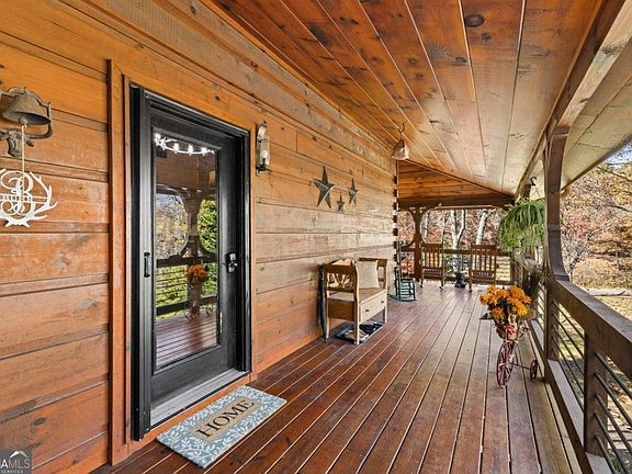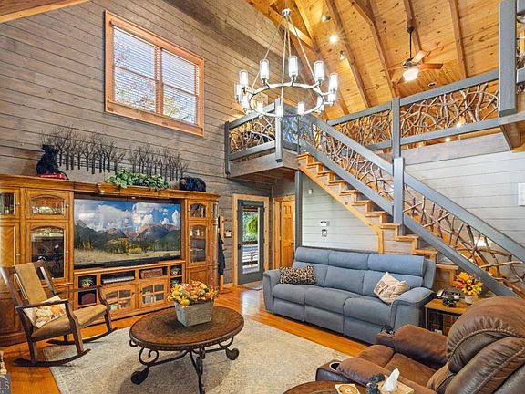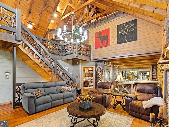 Welcome to your storybook mountain retreat - a one-of-a-kind 4 bedroom, 3.5 bath cabin resting on 1.86 acres that runs along a stunning, rushing creek. From the moment you cross the charming bridge leading to the drive, you'll feel as though you've stepped into your own woodland escape - yet you're only 5 minutes to downtown Blue Ridge and just 8 minutes from McCaysville. Inside, you'll find a chef's kitchen designed to impress, with a striking stone surround framing the gas stove, plentiful cabinetry, and generous counter space for cooking and entertaining. The main-level master suite offers the perfect retreat, featuring a spacious layout and a luxurious en-suite bathroom built for comfort and relaxation. Upstairs are two spacious bedrooms with a jack and jill bathroom. You'll also find an additional loft living area and a large multipurpose room for a spacious office, hobbies, additional sleeping, etc! A favorite feature of this house is the magnificent terrace level - providing completely separate living - ideal for extended family, guests, or income potential - opening endless possibilities for how the space can be used. The terrace level has its own entry door, a full size garage, bedroom, bathroom, kitchen, & living. One of the most unique features of this home is its very own tree house accessed by a catwalk from the main house that looks over the rushing water. Lastly, enjoy a variety of hobbies in the detached work shop that is just across the driveway from the home! Every detail of this home was crafted with top-of-the-line finishes and unique design elements that set it apart from anything else on the market. With the soothing sounds of the creek, timeless craftsmanship, and unbeatable proximity to town, this property combines serenity and sophistication in true Blue Ridge fashion. Check out the virtual tour in the links to really take this property in!