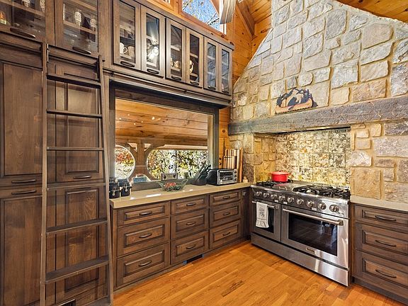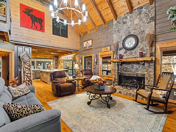 Welcome to your storybook mountain retreat — a one-of-a-kind 4 bedroom, 3.5 bath cabin resting on 1.86 acres that runs along a stunning, rushing creek. From the moment you cross the charming bridge leading to the drive, you'll feel as though you've stepped into your own woodland escape — yet you're only 5 minutes to downtown Blue Ridge and just 8 minutes from McCaysville. Inside, you'll find a chef's kitchen designed to impress, with a striking stone surround framing the gas stove, plentiful cabinetry, and generous counter space for cooking and entertaining. The main-level master suite offers the perfect retreat, featuring a spacious layout and a luxurious en-suite bathroom built for comfort and relaxation. Upstairs are two spacious bedrooms with a jack and jill bathroom. You'll also find an additional loft living area and a large multipurpose room for a spacious office, hobbies, additional sleeping, etc! A favorite feature of this house is the magnificent terrace level - providing completely separate living — ideal for extended family, guests, or income potential — opening endless possibilities for how the space can be used. The terrace level has its own entry door, a full size garage, bedroom, bathroom, kitchen, & living. One of the most unique features of this home is its very own tree house accessed by a catwalk from the main house that looks over the rushing water. Lastly, enjoy a variety of hobbies in the detached work shop that is just across the driveway from the home! Every detail of this home was crafted with top-of-the-line finishes and unique design elements that set it apart from anything else on the market. With the soothing sounds of the creek, timeless craftsmanship, and unbeatable proximity to town, this property combines serenity and sophistication in true Blue Ridge fashion. Check out the virtual tour in the links to really take this property in!