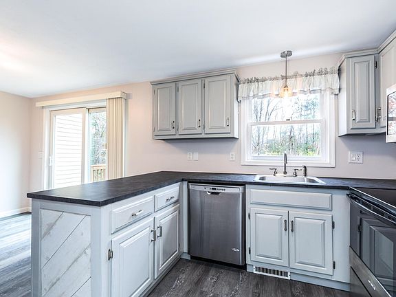 Welcome to a move-in ready updated South Dover 2 bedroom, 1 1/2 bath End Unit townhouse situated on a quiet cul de sac area of the community. Recent updates include fresh paint, new carpet and vinyl plank flooring! Drive into the under attached garage with direct entrance to the condo and additional unfinished utility room space on the lower level for storage, bikes, and other belongings. The townhouse style offers an open layout kitchen and dining space with access to a rear deck for outdoor dining and entertainment. The living room and handy 1/2 bath/laundry area off the kitchen complete this main level space. The upstairs primary bedroom has double closets, full bath and a second bedroom. There is a staircase from the 2nd bedroom leading up to the top floor currently unfinished space which offers easy access storage or provides an opportunity for future finished space as desired. This end unit benefits from being located in the condo community in an area with plenty of open space to the rear and side of the unit. This is a pet friendly condo and has close proximity to downtown Dover and highway access to all nearby towns, UNH and the seacoast.