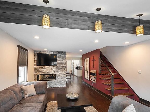 OPEN HOUSE CANCELED. UNDER CONTRACT. No further showings at this time. Beautifully stoned, updated home with a perfect blend of modern and functional living space. First floor includes spacious living room with double-sided stoned gas fireplace leading to a nice size dining room. Off the dining room is an updated kitchen with granite counters, stainless steel appliances and under cabinet lighting. High-hat lighting throughout along with built in speaker system in living and dining room. Bathroom with tub conclude this perfectly flowing floor. Second floor includes two nice sized bedrooms and a gorgeous bathroom with walk-in shower. Additional closet and linen closet located in hallway. Laundry is located in basement where you will find a large crawl space and plenty of room for storage! Located in a friendly neighborhood with large backyard that is perfect for entertaining, complete with paver patio and shed that is wired for electric and internet! Equipped with a 4 car driveway, not to mention - LOW taxes! New siding, kitchen & roof completed in 2020. Come make this beautiful move-in-ready home yours today! BEST AND FINAL WED, FEB 9.