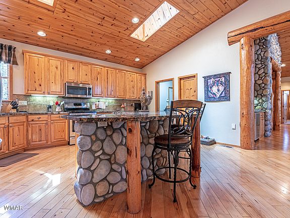 This beautifully maintained custom home is stunning. You will feel right at home as soon as you walk in the front door. The primary suite features a fireplace, double sinks, big walk in shower and closet, access to the back porch which overlooks a reveen onto the golf course. Wood flooring accented by carpet and tile, t&g vaulted ceilings throughout. The stunning kitchen boasts a huge granite counter topped island with built in garbage compactor, ample storage space, seating for 6. Stainless steal appliances, 5 burner gas range, french door refrigerator skylights for natural lighting and a nice pantry. The whole house and deck are wired for sound and a Boise system available and has a central vacuum system. Off the kitchen is the laundry with more storage, laundry sink and a built in deskwith access to the 2 car garage, built in cabinets, water heater and softner. The open concept kitchen, dinning, living room have a window view to the back covered porch over looking the reveen and golf course. The stone faced fireplace in the living room is so inviting. A custom built unit includes a bar with wine fridge and entertainment unit. Guest bedrooms are large, one has an inviting under window seating, the other bedroom has built in double bunk beds and en suite.