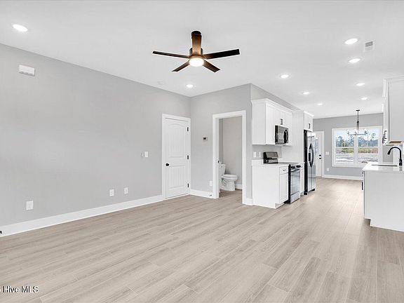 Really nice home for a large family with a fully landscaped huge back yard for kids. The .81 ac lot feels much larger with a wooded buffer down the right side that assures plenty of backyard privacy. There is a spacious Master bedroom with a large walk-in closet featuring upscale wooden shelves. The Master bath has a double sink vanity with quartz top and a luxury tiled shower with an upgraded frameless glass door. The kitchen looks great with white quartz countertops and a black composite sink to match the black appliances. The refrigerator is built into a recessed cubby to allow for the unit to be pushed back to countertop depth for a cleaner look and more walking space.