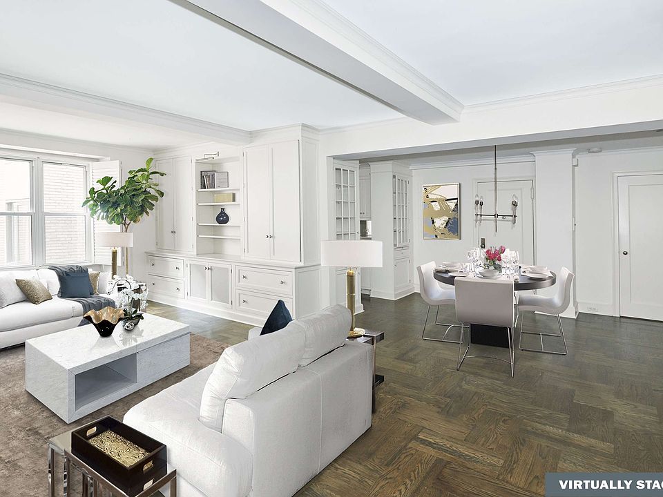 CONTRACT SIGNED 60 Gramercy Park North This well-appointed corner apartment with an unusual layout is located in the South tower of the Emery Roth Prewar gem on Gramercy Park. Beamed high ceiling, crown molding, a faux fireplace, new dark hardwood floors, windowed state of the art chef's kitchen with hi end appliances, tons of built-ins make this a very special home. The apartment was stripped to its bare bones and tastefully renovated a few years ago. The new full bathroom complete with Kohler fittings can be accessed from both bedrooms in addition to a fairly large powder room in the second bedroom. Built in 1924 and designed by Emery Roth using Spanish and Italian motifs and Renaissance-inspired terra cotta detail, 60 Gramercy Park North is truly one of the landmark buildings on Gramercy Park. A key to Gramercy Park, the only private park in the city, plus proximity to the newly restored Gramercy Park Hotel, trendy restaurants of Park Avenue South, Union Square and all major subway lines, are added benefits. The building offers full-time doormen, a fully equipped state-of-the-art gym, central laundry, private storage cabinets, a bike room and a live-in resident manager. There are two beautifully landscaped central courtyards. The building is pet friendly and allows parents to co-purchase with children.