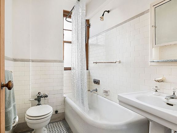 High ceilings and beautiful hard wood floors along with other prewar details enhance this wonderful space.