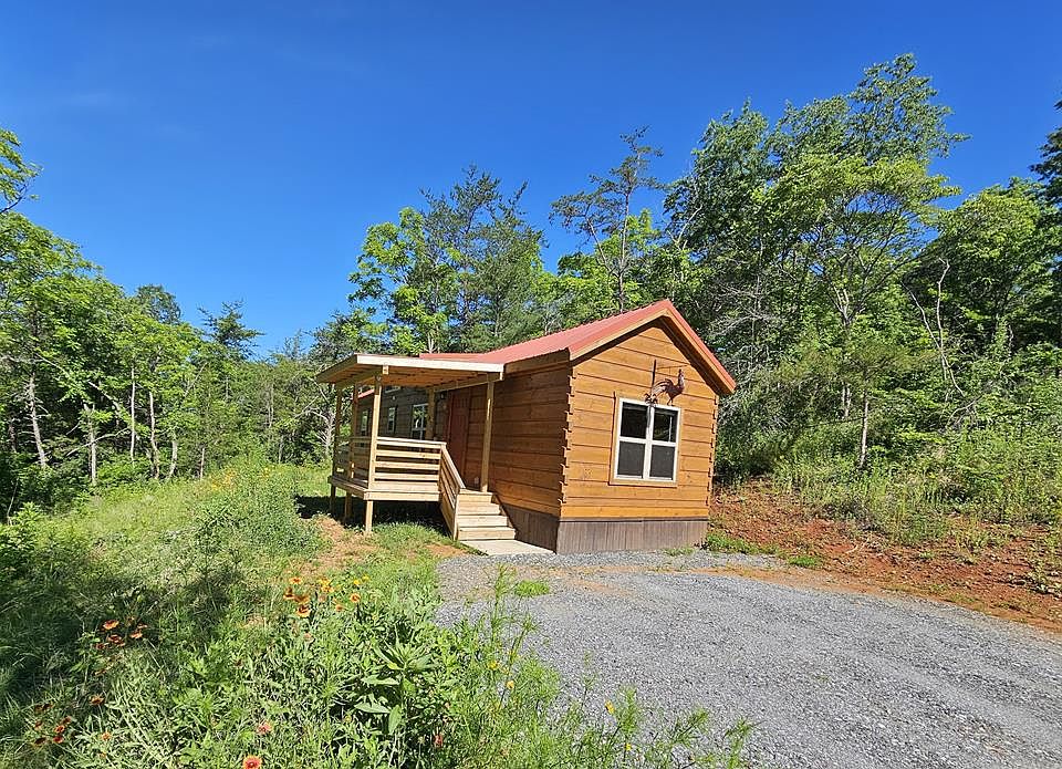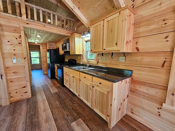 New tiny home manufactured in 2023. This home has solid log wall construction. There is extra space in the living room for full-size furniture with large windows. There is also space for a dining table across from the kitchen. The galley-style kitchen is 15ft long and features a residential-size refrigerator, electric stove, microwave, and stainless sink and faucet. Stackable washer and dryer hookups are available. The primary bedroom features 2 closets and a wall-mounted TV connection. The loft area is accessed by steps from the hallway and is very roomy. The exterior of the home is made of wood logs with a very nice stained finish and a covered entry. The property is located just minutes from downtown Franklin and is paved to the property. Optimum is ran up drive way and would need to be connected to home. Please verify with Optimum availability.