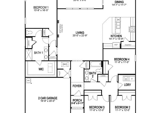 Welcome home to an entry foyer that leads you into a great room where the open concept kitchen & dining area becomes the focal point of this home. This plan feels spacious from the moment you enter. The finely appointed kitchen features a large island perfect for bar-style eating or entertaining, walk-in pantry, plenty of granite counter space, and thirty-six-inch cabinets. Bedrooms are all on One Level. Primary bedroom includes a walk-in closet, double vanity, glass shower and separate water and linen closets. Three other bedrooms, with walk in closets, share a second hall bathroom. Enter the home from your two-car garage and into a valet creating a built-in mud room. Separate Laundry Room and Covered Porch for your convenience!!!