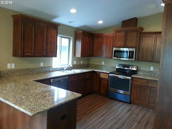 Great 2014 single level 4 bed, 2 bath on a quiet street. Upgraded kitchen with custom cabinets, granite counters and matching GE stainless steel appliances. Refrigerator included. Laundry room with sink and cabinets. Extra large driveway with RV space. Custom ADA ramp to front and garage doors.