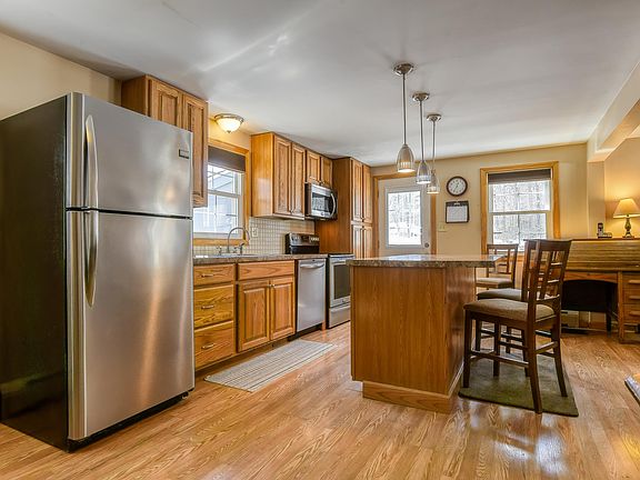 Bartlett Village Ranch set on a level grassed yard. This updated 3-bedroom, 2-bath home is just a short walk to restaurants, Post Office, the Bartlett School, and a 3-minute drive to the ski slopes at Bear Peak and the town beach on the Saco River. Enjoy time on the expansive porch in the warmer months with friends. Other features include a primary suite and a full basement with a pellet stove too.