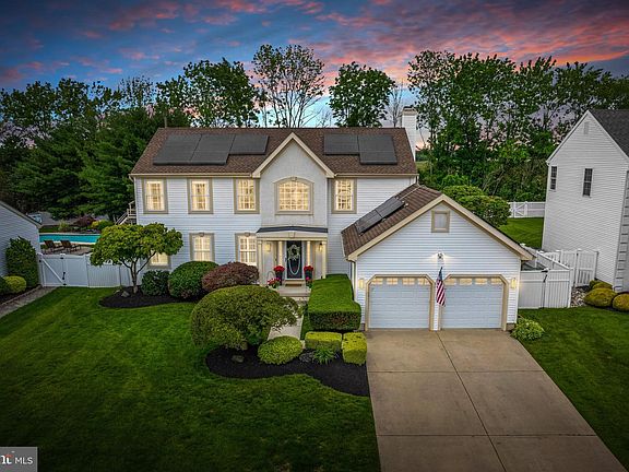 OFFER ACCEPTED OPEN HOUSE CANCELLED...6/14. Welcome to this exceptional, meticulously maintained home located in the highly desirable Hunters Chase neighborhood of Washington Township. From the moment you arrive, you’ll be captivated by the home’s impressive curb appeal, featuring beautifully manicured landscaping, a double driveway, and a spacious two-car garage. Inside, a grand two-story foyer sets the tone for the elegance and warmth found throughout. Gleaming hardwood floors extend across the main level, highlighting the inviting living room, formal dining room, eat in kitchen, and family room. Every window on the first floor is adorned with timeless plantation wood shutters, adding both charm and privacy. The kitchen serves as the heart of the home with an abundance of cabinetry, granite countertops, and stainless steel appliances—perfect for everyday living and entertaining. The adjacent family room features a beautiful gas fireplace and opens to a versatile bonus room that’s ideal for a home office or playroom. French doors from the family room lead to an expansive Techno-Block paver patio, offering a seamless transition to the backyard, which has been thoughtfully designed for unforgettable gatherings. The outdoor space includes a 38' x 23' patio with built-in lighting and a firepit, a relaxing jacuzzi, and a saltwater in-ground pool surrounded by a safety fence—creating the perfect setting for relaxation and entertainment. Upstairs, the hardwood flooring continues through the hallway and into the spacious primary suite, which boasts a beautifully renovated en-suite bathroom with shiplap paneling, dual sinks, and luxurious finishes. The additional bedrooms are generously sized with vinyl flooring and excellent closet space, while the hall bathroom also features double sinks and serves the remaining bedrooms with ease. The finished basement provides even more living space with newer vinyl flooring, offering flexibility for a home gym, recreation area, or lounge, along with ample room for storage. Major upgrades have been made, including a newer roof, HVAC system, water heater, and solar panels for enhanced energy efficiency and lower utility costs. Ideally situated just minutes from major highways, Philadelphia, and the Jersey Shore, this home combines comfort, style, and convenience in one of Washington Township’s most sought-after communities. This is a rare opportunity to own a truly turnkey property that has it all.