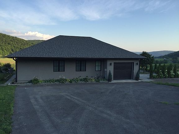 RADIANT FLOOR HEAT & CENTRAL AIR! Built in 2013. Open floorplan. High-end Poggenpohl German Kitchen. Wall to wall windows south facing. Amazing Views, 3 sheds & 18 gorgeous acres. Million Dollar view! Huge finished LL space. Peach, plumb, apricot, pear trees, raspberry and blueberry bushes. Click on above link for virtual tour. Gated entry.