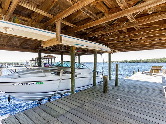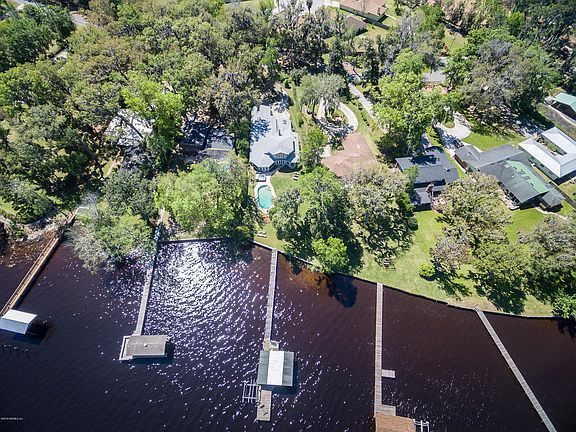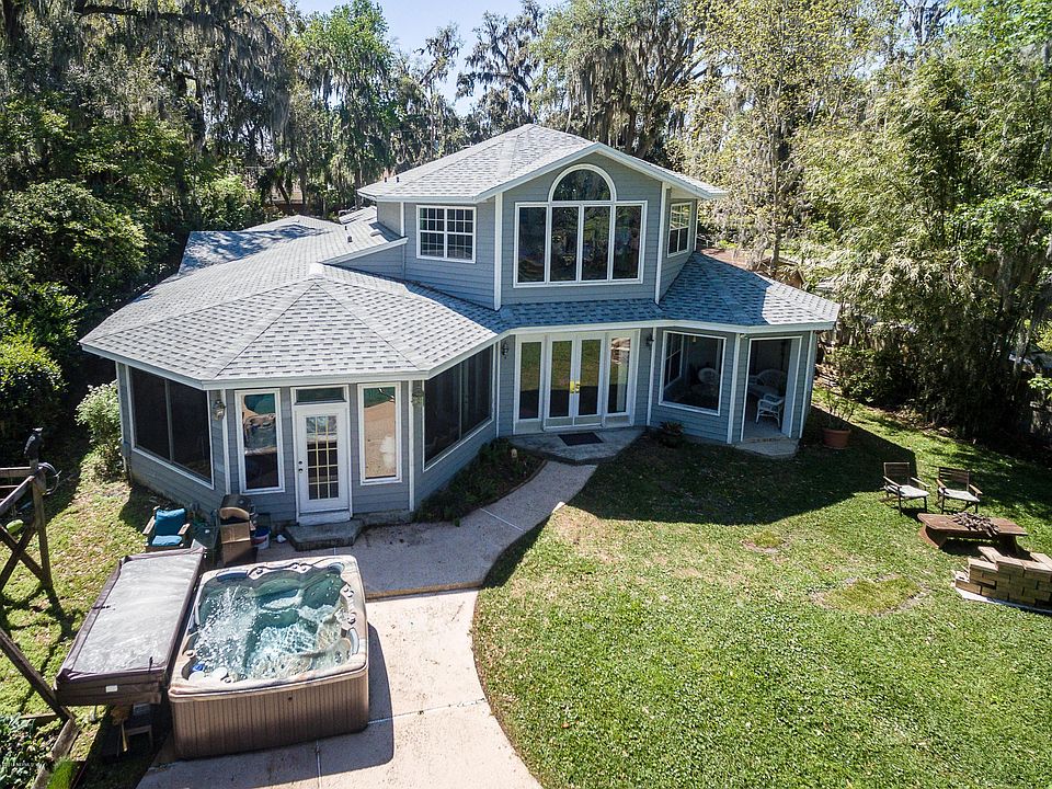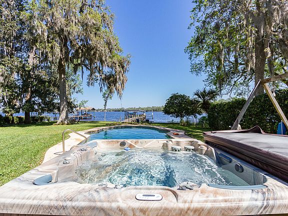 The Perfect peaceful setting right on Doctors Lake! Home nestled on Half Acre wooded lot that boasts 99' width at the water! Dock and Boat Lift is included. The back yard is a paradise... Large in-ground pool with separate Hot Tub and ample room to entertain both outside and inside as well. Kitchen has gorgeous Granite, Travertine back splash & New Appliances. Open plan to the multiple living areas, while enjoying the breathtaking views from almost any room. Accommodate large Family gatherings in your over sized Dining Room. Rich Hardwood floors downstairs & New carpet just installed in large Family Room. Roof was replaced last year. Enjoy expansive views from your private Master Suite. Dual fireplaces. Circular driveway with English garden Island. Quiet street, great location.