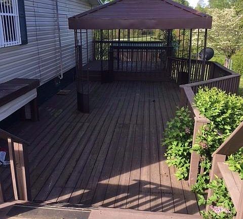 Home features 3 bedrooms, 2 baths, hardwood floors, sunken jacuzzi tub, beautiful kitchen, upstairs fam. rm with fireplace & living rm with fireplace. There is a multi-level large rear deck, 2 storage buildings, carport, covered front porch & all situated on approx. 5 acres