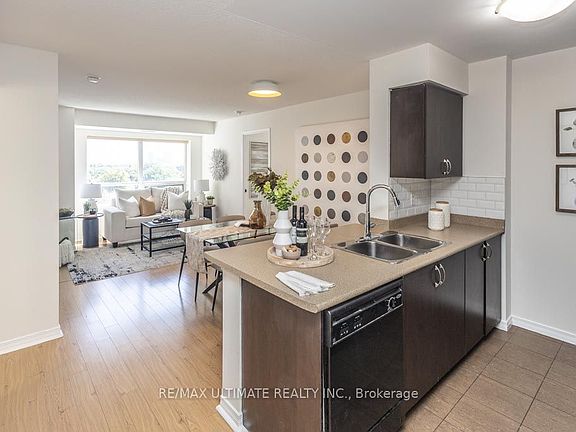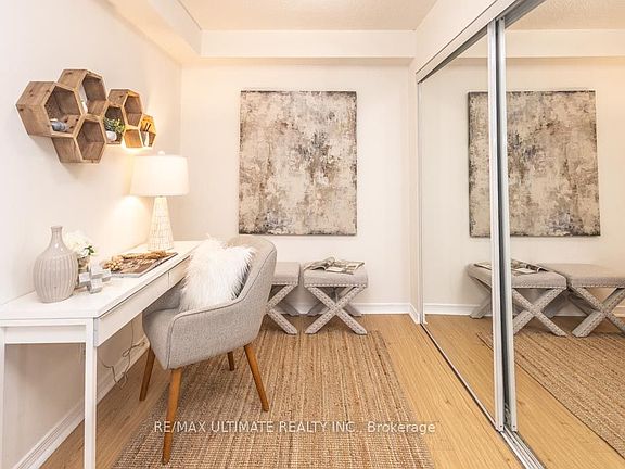 Step into this fabulous 2-bedroom + den condo in the heart of the trendy Junction. This bright and airy unit spans nearly 800 square feet and features a functional, open-concept design. Enjoy abundant natural light from the sunny southeast exposure, which highlights the sleek laminate flooring and freshly painted walls throughout.The modern kitchen is a chefs dream with a custom backsplash. The unit also includes a functional open-concept den with a mirrored closet and a south-facing balcony with deck tiles. This home comes complete with a dedicated parking space and a storage locker. The updated 4-piece bathroom boasts a new vanity with a quartz counter and undermount sink, adding a touch of luxury.This is more than just a home; it's a lifestyle. Located in a top-rated school district, you'll be surrounded by organic grocers, charming cafes, and top-notch restaurants. Enjoy easy access to Stockyards Plaza, High Park, scenic trails, and excellent transit options including the TTC and UP Express.The building is one of the Junction's most sought-after condo communities, known for its strong management and low maintenance fees. The quiet balcony off the primary bedroom is perfect for peaceful mornings.You'll have access to a fantastic array of amenities, including a 24-hour concierge, visitor parking, a party room, a kids' playroom, a BBQ terrace, a gym, a yoga studio, a library, EV charging, bike storage, and more.